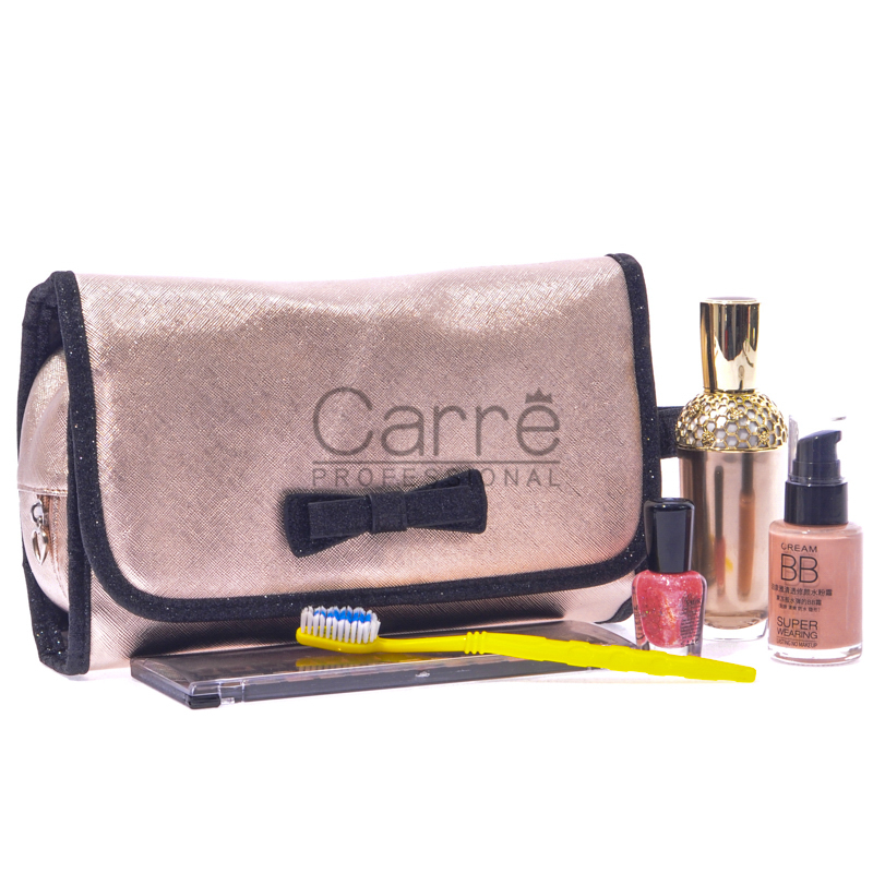 leather foldable hanging travel toiletry bag for women (CTB043)