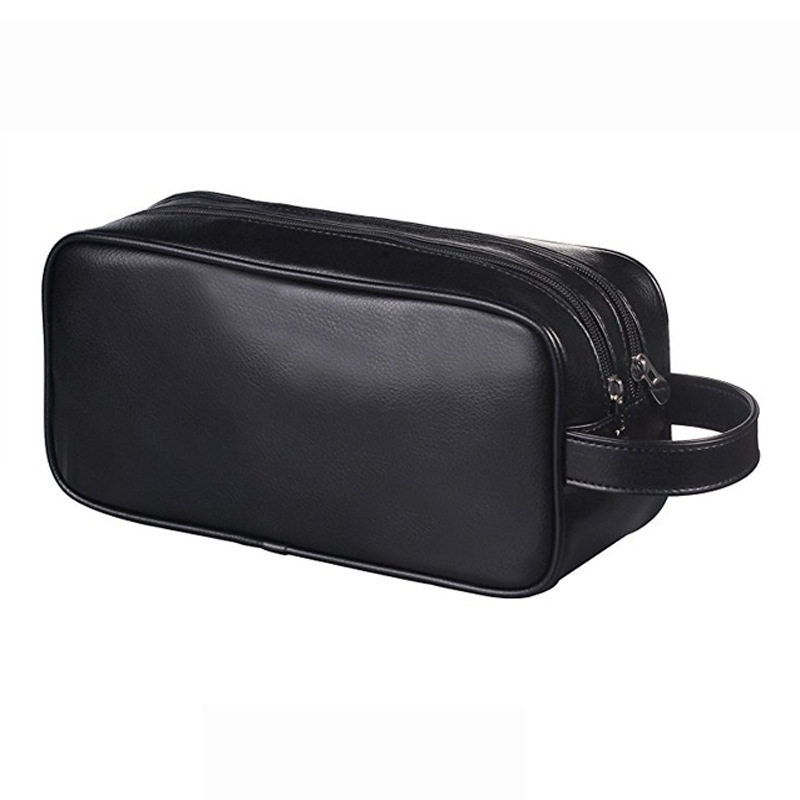 black PU leather men travel amenity kit organizer bag toiletry bag (CTB051)