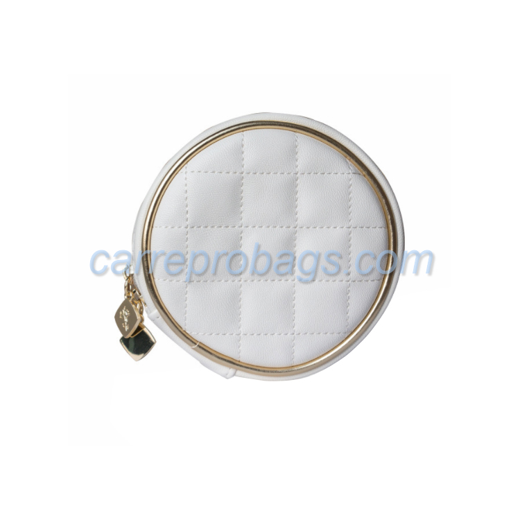 Promotional Round Shape Quilted Leather Jewelry Case Lipstick Cosmetic Bag (CLP001)