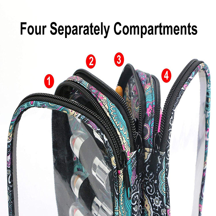 * 4 Separately Compartments: 6 lipsticks slots each side ( total 12); Middle 5 slots for brushes and A transparent PVC pocket for jewelries or cosmetics accessories.