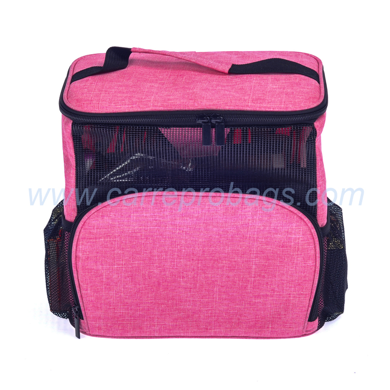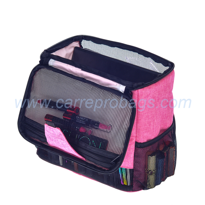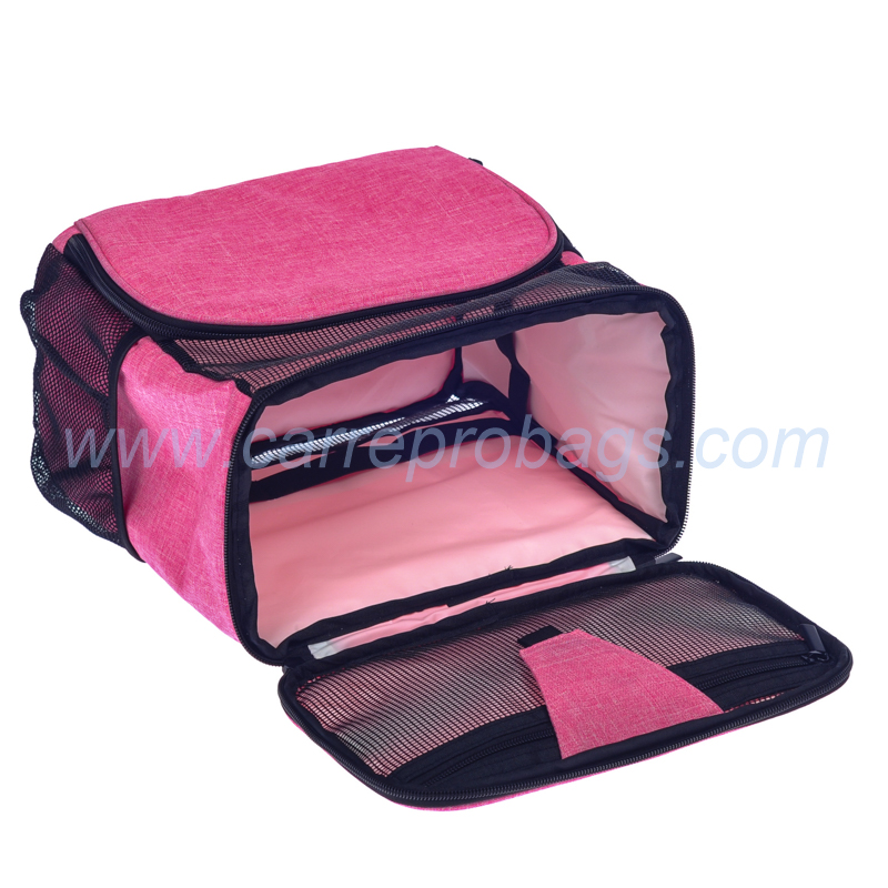 pink polyester toiletry bag with mesh pockets (CTB006)